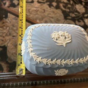 Wedgwood Elegant blue box with white floral accents. Perfect for decor or storage.