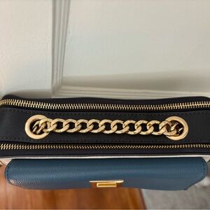 MK crossbody - black, blue, and white with gold chain strap and gold hardware. Normal wear. Discoloration on the back (white) side. See photos. Accepting offers.
