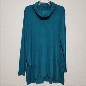 J Jill Button Up Tunic Top Gauze Textured Navy Blue Cotton 3X Roll Tab Sleeves