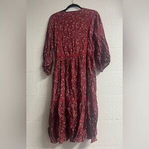 Max Studio burgundy dress with floral pattern. Long sleeves and elegant design.