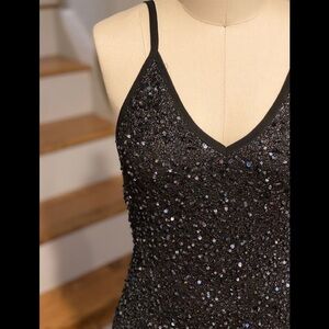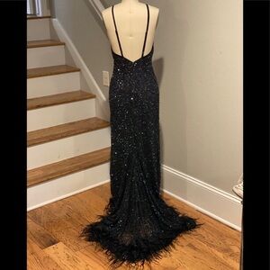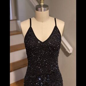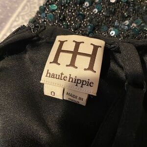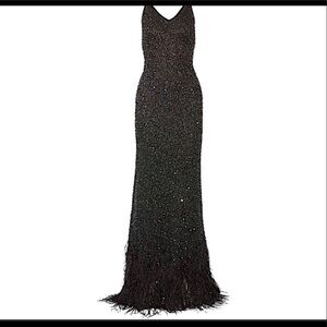 Haute Hippie Sequin Bead Feather Embellished Gown. Black Iridescent Beads. EUC