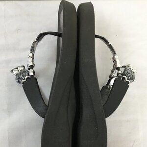 Grandco Beaded Thong Sandals Purple Metallic and Black Size 9 GREAT Condition