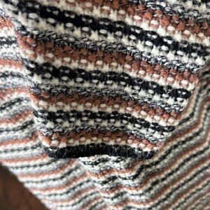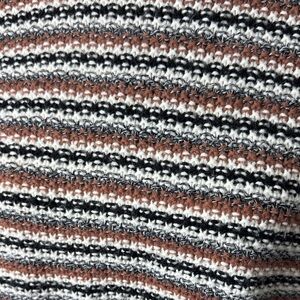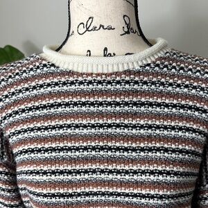 Cozy striped knit sweater with a mix of colors. Perfect for casual wear. Great vintage condition. Brown, black and grey colors in the knit.
