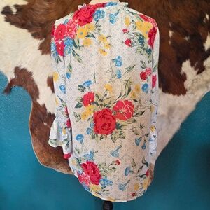 The Pioneer Woman Floral Blouse with Red and Yellow Accents
