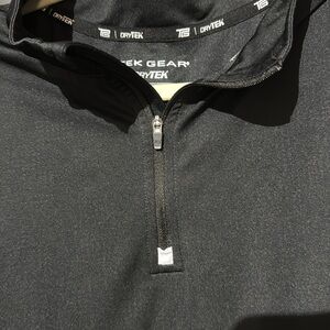 Comfortable black pullover with quarter-zip. Ideal for active wear. No holes or stains.