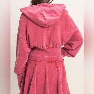NWT Acid Washed Cropped Zip Up Terry Hoodie Crop Hooded Sweatshirt Dark Red