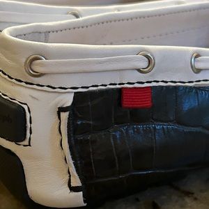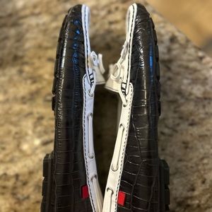 Elegant loafers with a black and white leather finish. Features a classic design. Ideal for everyday comfort. These are great looking!