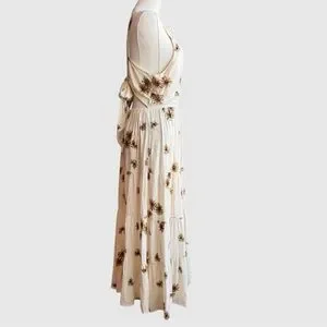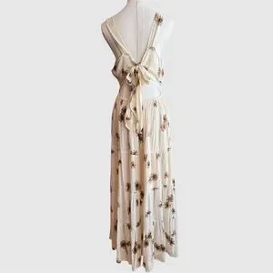 VICI Cream & Brown Floral Maxi Dress, Back Tie Closure, Size X-Large