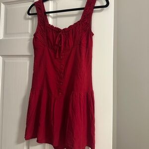 Spring mini dresses don't get cuter than this. This prairie silhouette is designed with smocking details on the back, ruffle accents, fixed buttons on the front, and our brightest shade of red, Romance. Slip into Christa and you'll be ready for frolicking every weekend this season.