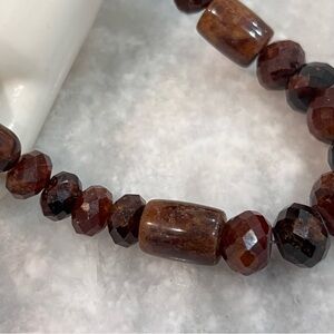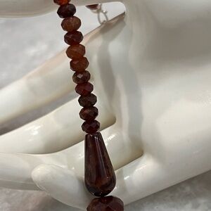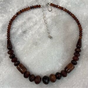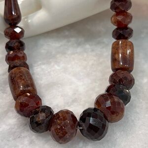 This is a stunning, solid beaded necklace consisting of varied shapes and sizes of faceted and smooth Hessonite beads
