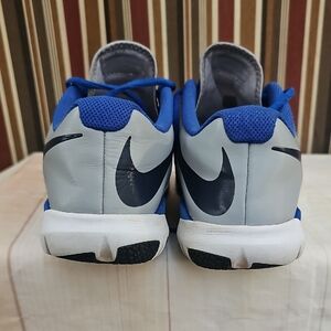 Nike sneakers with a sleek gray and blue design. Lightweight and breathable for active wear. in good condition but comes with NO insoles. please be aware of that. as is
