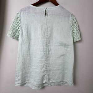J. Crew Linen & Lace Short Sleeve Blouse Top in Mint Style C3489 Size 10