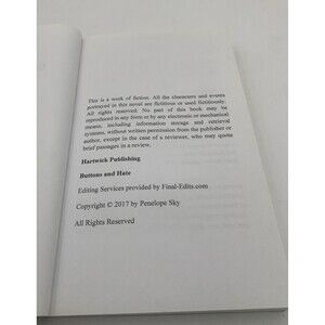 "Buttons and Hate (Volume 2)" by Penelope Sky is a romance/suspense novel in the Buttons series, published by CreateSpace in 2017. This 340-page trade paperback is written in English and follows a captivating storyline. With an item length of 8 inches and a height of 0.8 inches, this very good quality paperback is a must-read for fans of the genre.