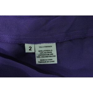 Delivery Duty Paid included – The Alissa Garden Georgette Dress in iris purple by Ulla Johnson is a floral silk ruffle style, with intricate picot edging, diagonal ruffle detailing, split neck with ties, raglan sleeves, an elastic waist and lined skirt.