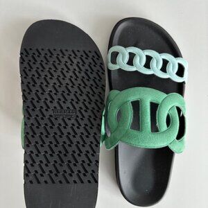 Hermès Femme Extra Sandals Vert Opaline / Bleu Cristaux US 39