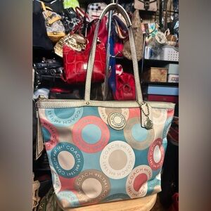 This Coach is stunning with its patent leather shine & black & yellow inlaid C pattern. The interior of this bag is also leather, which is different for Coach. Includes hangtag, interior zip pocket & good interior space.