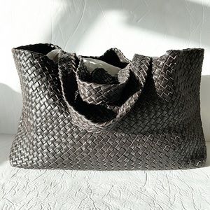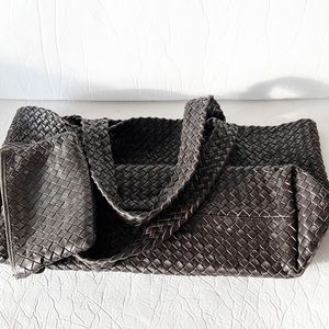 Super soft genuine leather weave large tote