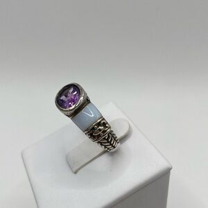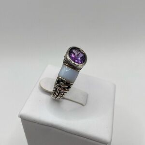 Sterling Silver 925 Blue Chalcedony Purple Amethyst Ring Size 8