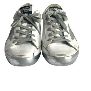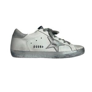 GOLDEN GOOSE superstar white leather silver trim Womens Sneakers size 37 7