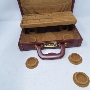 Vintage MCM Burgundy Red Faux Leather Jewelry Box Combination Lock Briefcase
