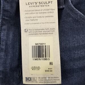 Fabric: Levi's Sculpt Hyperstretch—advanced blend of LYCRA fiber and cotton for extreme stretch
