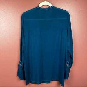 Missing the bottom button. 100% cupra rayon. underarm to underarm 21 inches, length 30 inches. Measurements are approximate