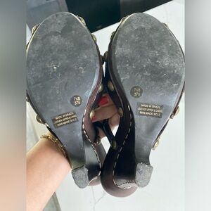 BCBGMaxAzria Brown leather wedge Heels with Stitch Detail 7.5