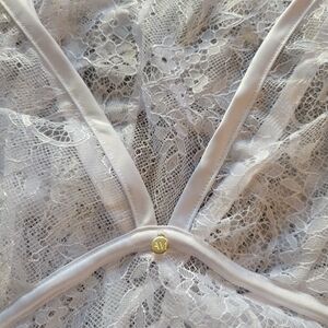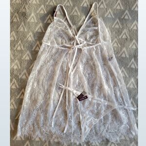 "The Addison babydoll is a classic with a twist. With soft lace cups and allover eyelash lace, this [white] babydoll is flirtatious, fun, and fitted for a perfect look. Compete this lingerie ensemble with the matching lace g-string panty [included]." New with tags and original packaging.