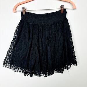 Free People Black Lace Elastic Waist with Tie Mini Skirt Size Small