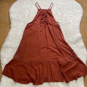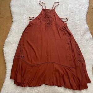 Free People heat wave rust embroidered swing tunic dress