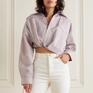 Chocolate brown cotton poplin pants featuring a fully adjustable tie waist and a low-rise fit, enhanced by a gathered waist. Finished with a long self-tie bow along the side.