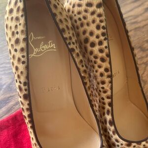 Elegant leopard print wedges by Christian Louboutin. Perfect for a chic look. Comes with original bag.