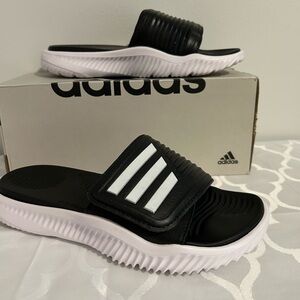 Adidas Black and White Comfort Slides