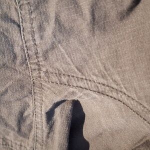 these Vuori ripstop climber pants have a gusseted crotch, double side pockets in the front side zipper pocket on the left, double back Pockets one slide one zipper.