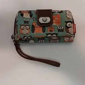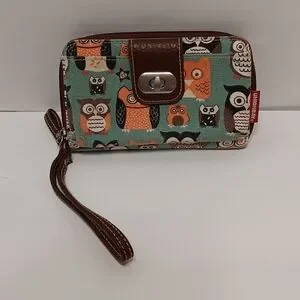 Charming owl print wallet by Unionbay. Features a delightful green and brown design.