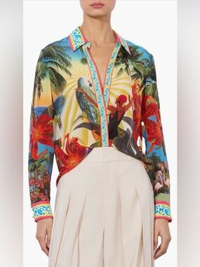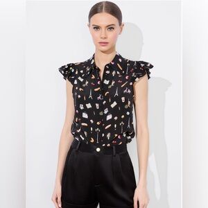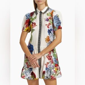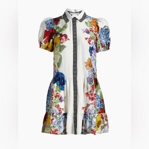 Alice + Olivia Claire Floral Puff-Sleeve Mini Shirtdress