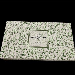 Enhance your dining experience with this elegant serving set. Featuring a sophisticated green and silver design, this set is perfect for any occasion. The intricate handle pattern adds a touch of class to your table setting. New in Box!