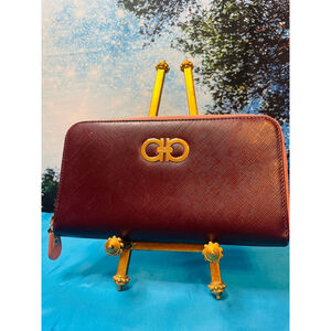 This is a pre-owned Gucci wallet. The exterior features a light purple with pink opalescent hues leather with the Gucci logo embossed throughout. It has a gold-tone zipper closure with a heart-shaped Gucci charm attached. The interior is lined with a matching light purple leather and includes multiple card slots, bill compartments, and a zippered coin pocket. There are some signs of wear, including minor scuffs and on the exterior. Please review photos. A real show stopper and it’s a Gucci!