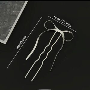 Add a touch of elegance to your hairstyle with this gold hairpin. Perfect for any occasion. The picture with the silver bow shows measurements only, you will receive a gold bow. Brand new.