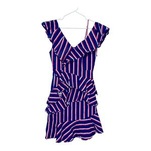 Alice + Olivia Laflora Asymmetric Ruffle Stripe Dress-Size 8