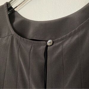 Brochu Walker Sleeveless Silk Blouse Pleated Back Dark Gray