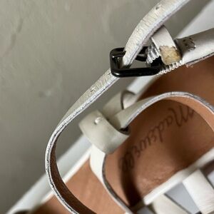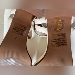 Madewell size 7 Step out in style with these elegant off white block heel sandals. Perfect for any occasion, these shoes offer both comfort and sophistication.
