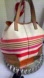 Stylish canvas tote bag featuring vibrant stripes. Perfect for everyday use with a spacious interior. The brown handles add a touch of elegance.