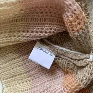 Miss Sparkling Oversized Loose Knit Sweater Womens L Cream Striped Boho Beachy