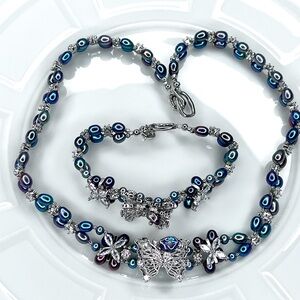 Double Braided Peacock Pearl Butterfly ๐ฆ Necklace Bracelet SET