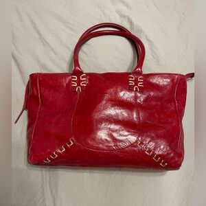 Very minor stain on back (pic 2) in 2 spots. Measurements shown. Wristlet strap unhooks to hook inside another bag if outfitted with an inside loop. 2 inside pockets to hold card/license and cash as well as lip gloss or small set of keys. Smoke free home.