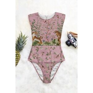 Aerie Melina Tiger Blossom One-Piece Swimsuit Pink New with Tags UV Protection L