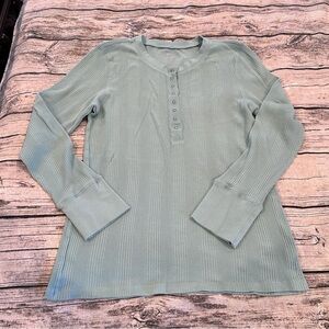 Aerie Light Bluish Green Ribbed Henley Knit Top; Super Soft XL