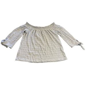 Keywords: Lucky Brand, Off Shoulder Top, Striped Blouse, Tie Sleeve, Casual Top, Blue and White, Small, Womens Top, Bohemian, Relaxed Fit, Long Sleeve, Elastic Neckline