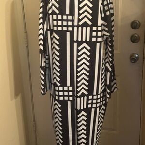 Elevate your wardrobe with this chic black and white long sleeve dress. Featuring a striking geometric pattern, it's perfect for any occasion.